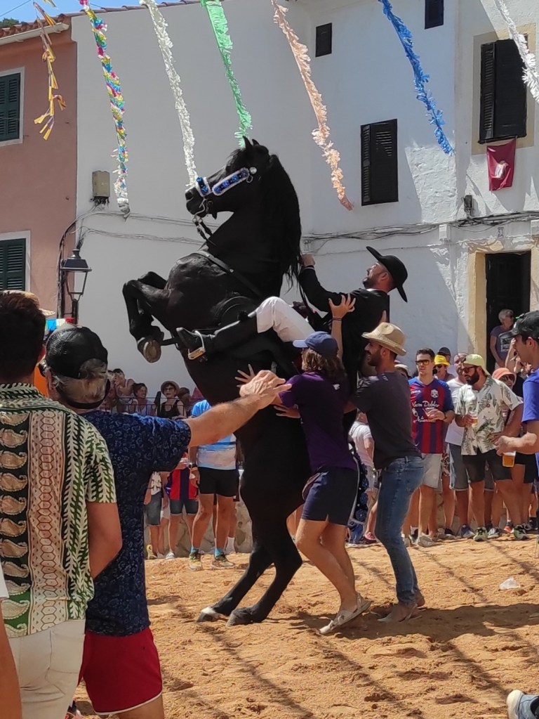 Los jinetes, conocidos como caixers, deben dar una vuelta a la plaza mientras el caballo se alza en dos patas. El sonido de los cascos resonando en las calles estrechas crea una atmósfera única llena de emoción. Los Jaleos son una experiencia que permite sumergirse en la rica tradición y cultura de Menorca.