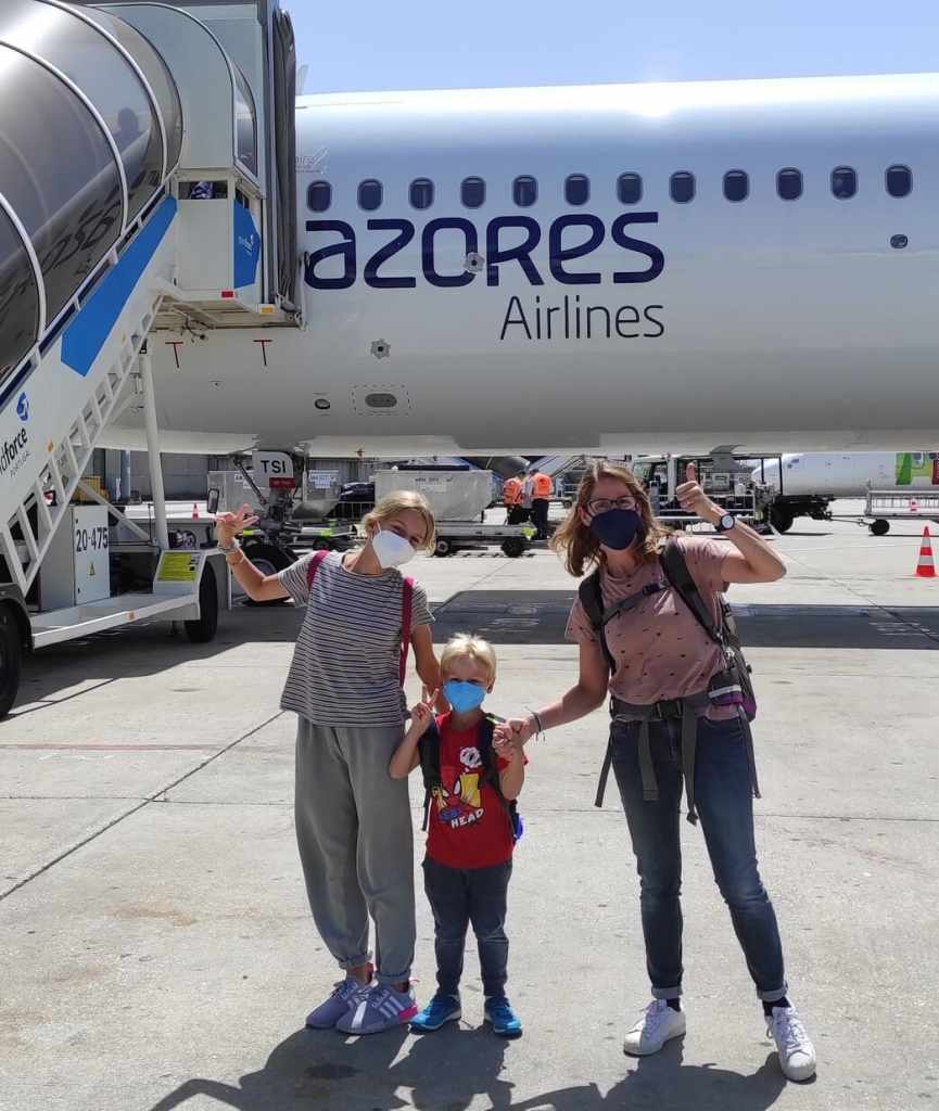 Nosoytros volamos con la compañía Azores Airlines, desde Barcelona a Ponta Delgada, con una corta escala en Lisboa.